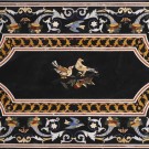 Sobre de mesa en piedras duras con fondo de mármol negro y decoración de cuernos de la abundancia, roleos de hojas de acanto y aves realizados a partir de piedras embutidas de distintos colores. S. XX