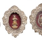 Lote compuesto por tres relicarios con marcos en metal plateado con decoración repujada de hojas de acanto y rocalla y diferentes imágenes devocionales al interior (Virgen del Rocío, Sagrado Corazón del Niño Jesús e Inmaculada Concepción). S. XX