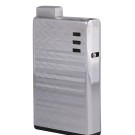 Encendedor Ronson Varaflame de butano, introducido en 1957. El diseño del cuerpo presenta un patrón de ondas grabado. Estos encendedores fueron pioneros al ofrecer una llama de gas variable. Estuche original.
