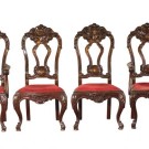 Lote compuesto por seis sillas y dos sillones en madera tallada con decoración de hojas de acanto y veneras y asientos tapizados en terciopelo rojo. España, S. XIX - S. XX