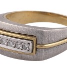 Anillo unisex en platino y oro amarillo de 18k con 5 diamantes de 0,15ct. Talla: 15. Peso total de la pieza: 7,8g.
