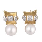 Pendientes en oro amarillo de 18k con diamantes y perla australiana de 11,5mm. Cierre omega. Peso total de las piezas: 9,45g