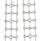 Pendientes largos en oro blanco con diseño de rejilla, diamantes de 1,28ct y pequeñas perlas cultivadas de 3,5mm. Cierre de presión. Peso total de las piezas: 14,75g