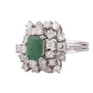 Anillo en oro blanco con esmeralda en su talla de 1,40ct y diamantes de talla brillantes de 2,2ct. Peso total de la pieza: 8,50g