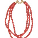 Pulsera de tres vueltas de cuentas de coral de 3,2mm con cierre de reasa marinera de oro amarillo de 18k. Largo: 18,5cm
