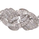 Broche en oro blanco ornamentado por bandas de diamantes de 3,50ct en abanico, siendo una de las líneas en talla baguete. Medidas: 7 x 3,5cm. Peso total de la pieza: 25,3g