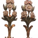 Pareja de remates en madera tallada y policromada en forma de ramilletes. España, S. XX
