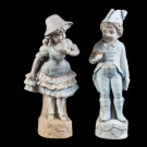 Pareja de figuras de niños en biscuit. S. XIX.