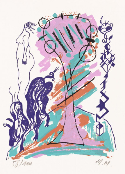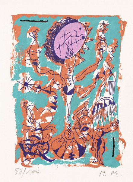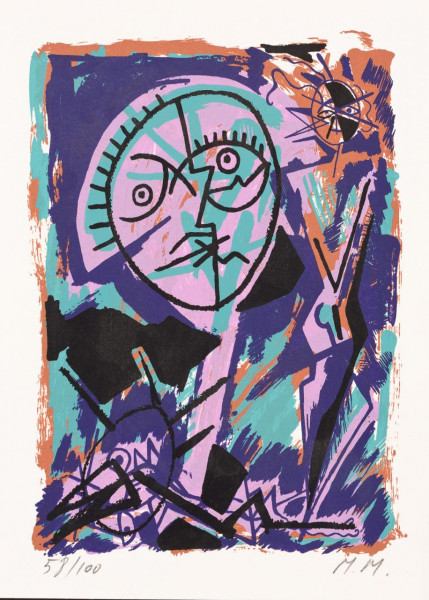 Lote formado por seis serigrafías firmadas y numeradas a lápiz 58/100. Estampadas en 1985 por el taller de serigrafía "Seisdedos".