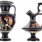 Lote de jarra y vasija griegas en cerámica con decoraciones clásicas. S. XX