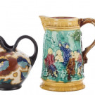 Lote de cuatro piezas en cerámica esmaltada compuesto por tres jarras y un cuenco. S. XX