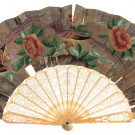 Abanico de las "Mil caras" con varillaje en hueso calado con país de doble hoja en papel pintado a mano con escenas palaciegas y personajes. China, S. XIX