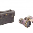 Antiguos binoculares del S. XX, decorados con esmalte sobre metal. Van en su estuche de cuero.
